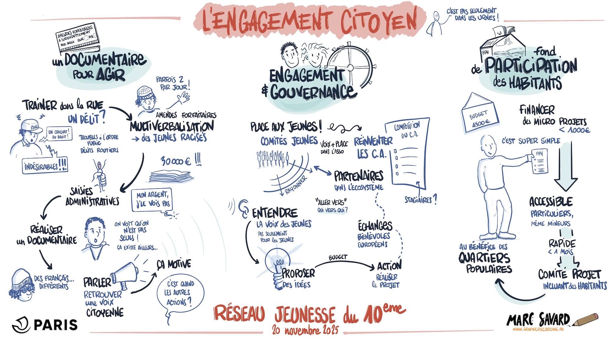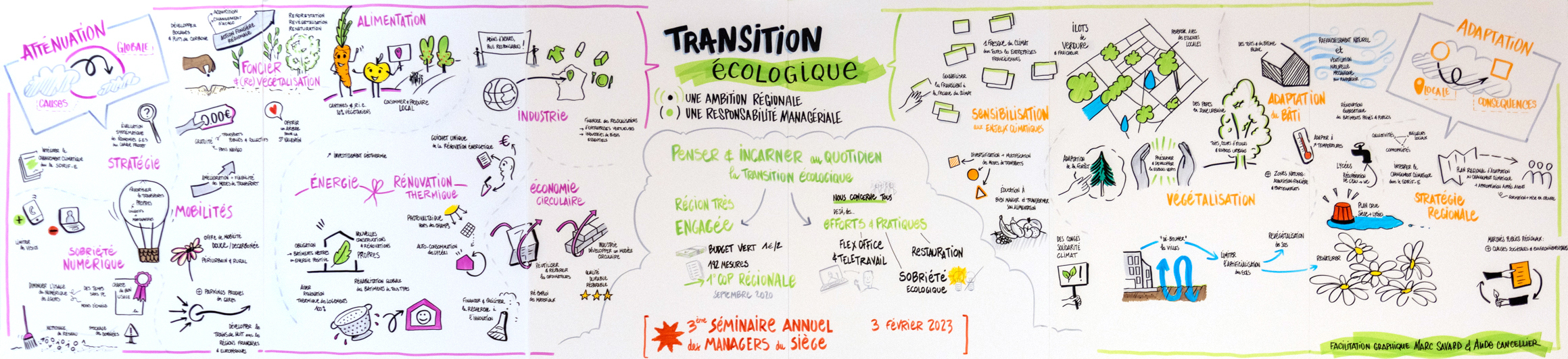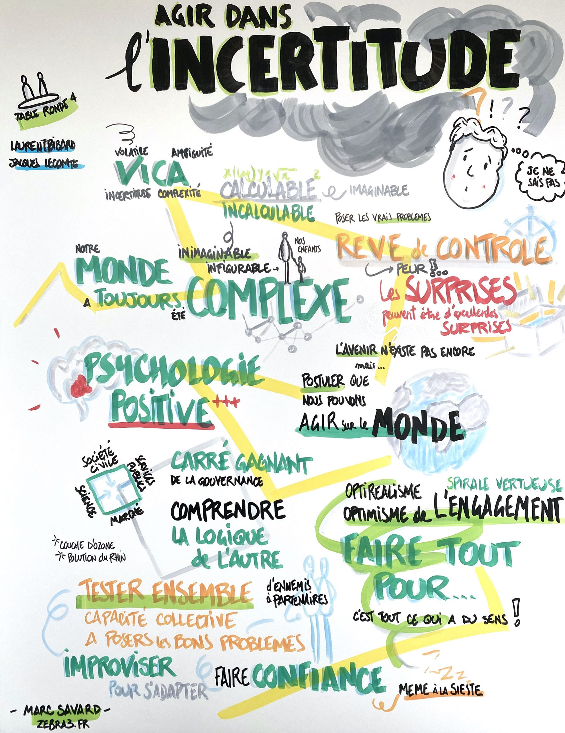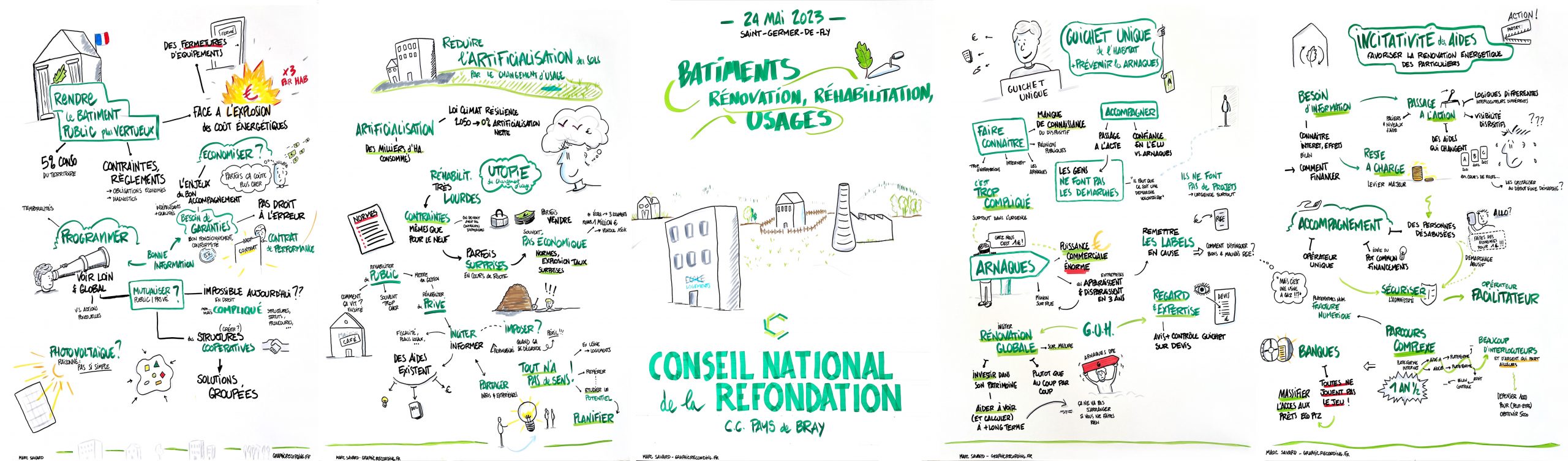 Contrairement à la captation graphique en direct, ce travail implique une réflexion des axes, de la structure, du niveau d’information adaptés à une démarche (à qui s’adresse-t-on ? dans quel but ? etc.) et fait l’objet de recherches et d’ajustement en collaboration.